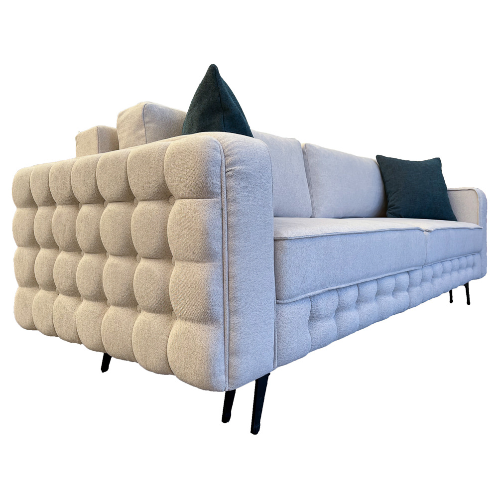 Canapeaua are un cadru solid, care iti asigura stabilitate si rezistenta. Tapitata cu stofa de calitate superioara, canapeaua asigura o durabilitate mare si un confort sporit. Este locul perfect pentru a viziona un film, pentru a citi o carte sau pur si simplu pentru a va relaxa. Produsul se livreaza demontat, ambalat in carton si folie. Produs fabricat in Romania.