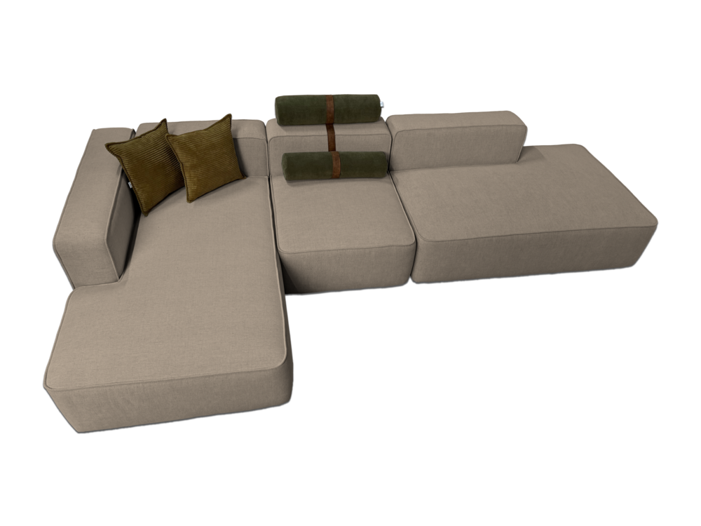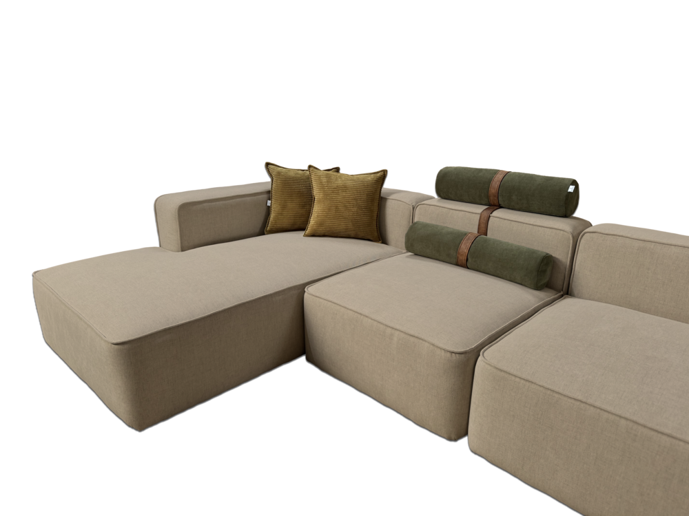 Dupa cum spune si numele, coltarul modular este compus din diverse piese care pot fi combinate liber pentru a se potrivi nevoilor clientului. Fabricate din materiale premium, sezutul generos ofera cel mai mare confort datorita utilizarii diferitelor straturi de poliuretan si a umpluturii moale de puf in interiorul pernelor si spatarelor. Produs fabricat integral in Romania.